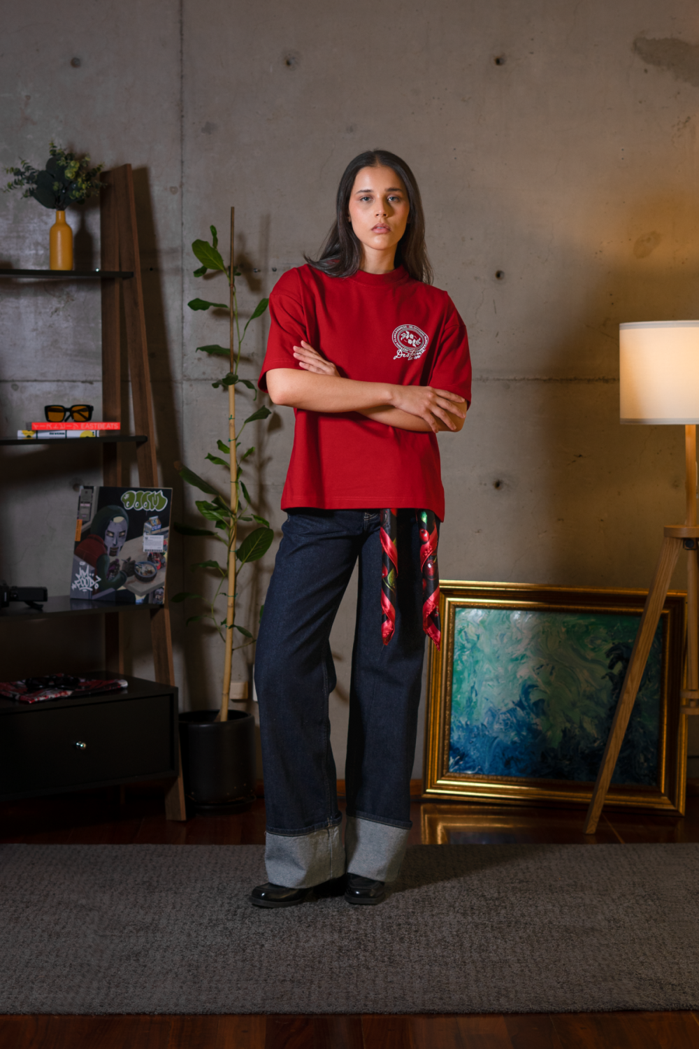 Si buscas un fit oversize equilibrado, te recomendamos pedir tu talla habitual — el corte es true to size, con el largo ligeramente más corto para lograr un look más estilizado sin perder el carácter oversize.
