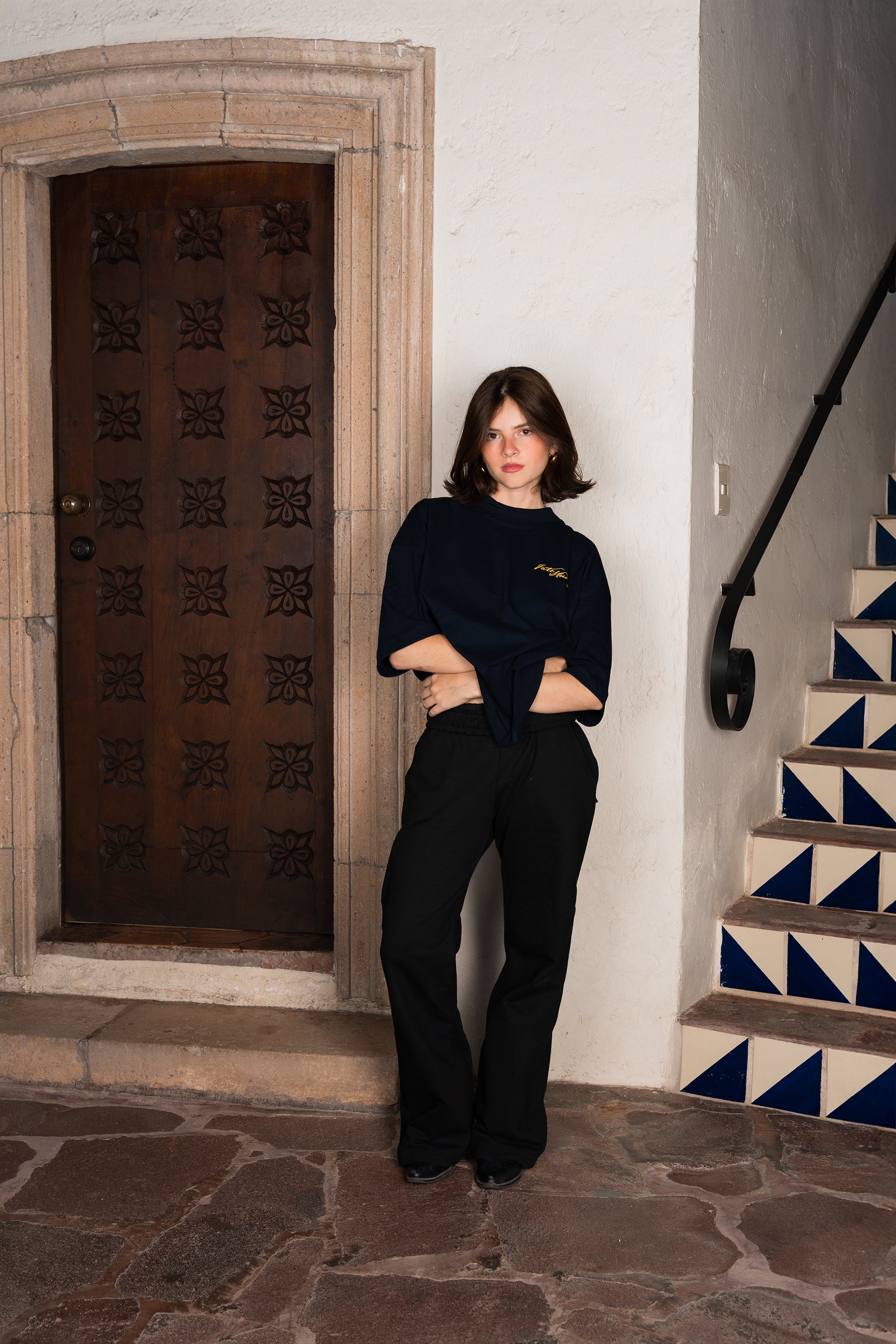 Si buscas un fit oversize equilibrado, te recomendamos pedir tu talla habitual — el corte es true to size, con el largo ligeramente más corto para lograr un look más estilizado sin perder el carácter oversize.