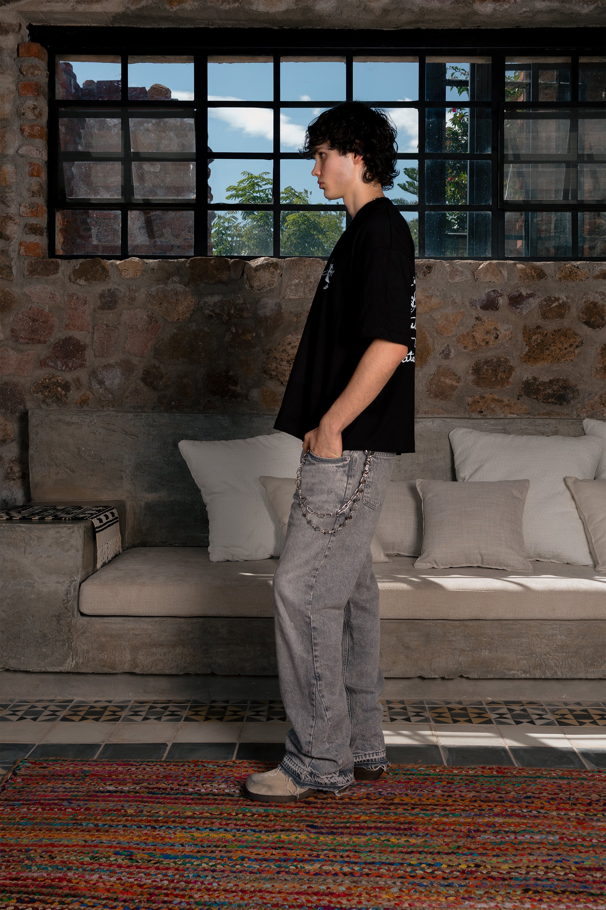 Si buscas un fit oversize equilibrado, te recomendamos pedir tu talla habitual — el corte es true to size, con el largo ligeramente más corto para lograr un look más estilizado sin perder el carácter oversize.