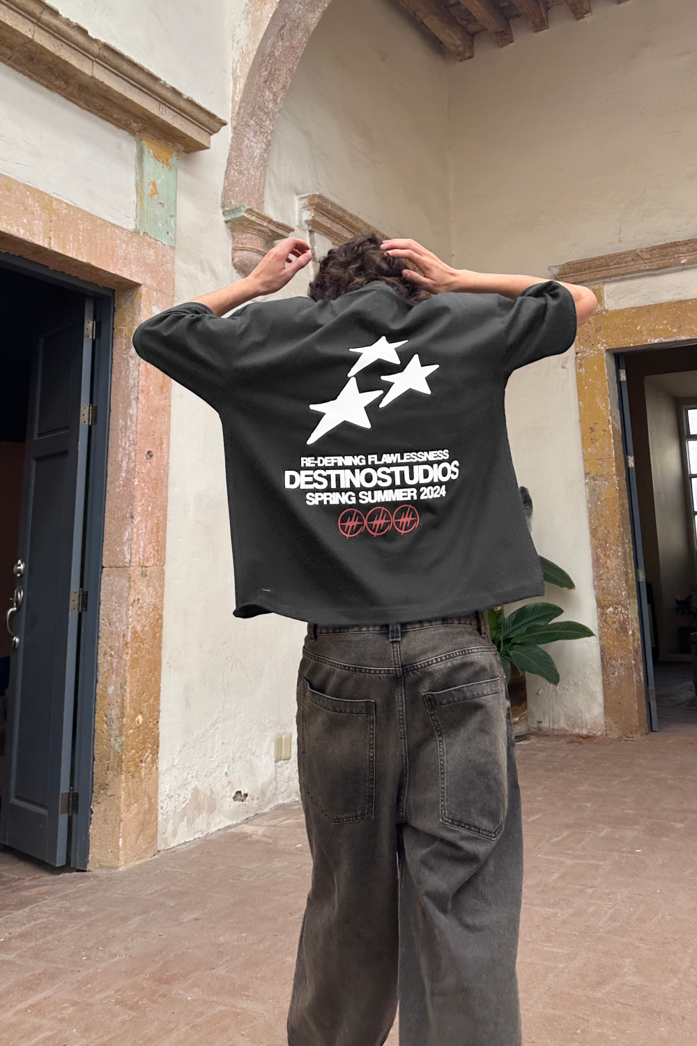 Nuestro fit oversize está diseñado para ofrecer caída, volumen y proporción en su punto justo: amplio en los hombros y pecho, con un largo ligeramente más corto para lograr una silueta más estética, moderna y favorecedora.