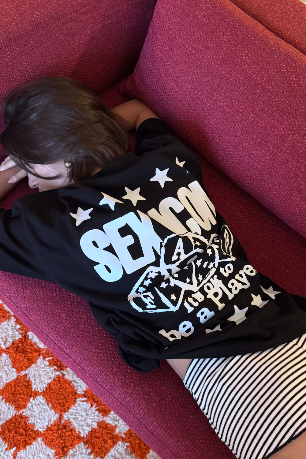 Si buscas un fit oversize equilibrado, te recomendamos pedir tu talla habitual — el corte es true to size, con el largo ligeramente más corto para lograr un look más estilizado sin perder el carácter oversize.