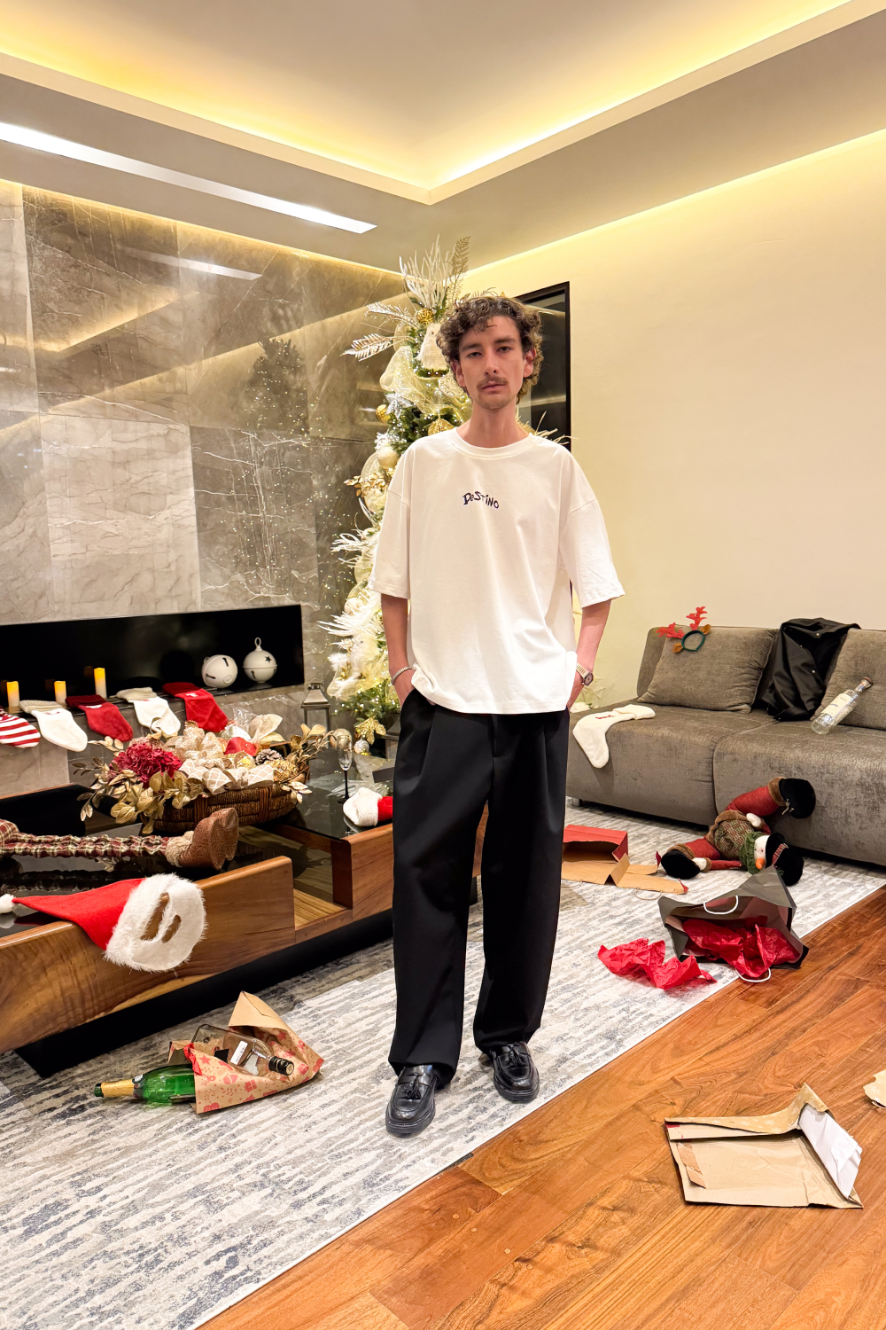 Si buscas un fit oversize equilibrado, te recomendamos pedir tu talla habitual — el corte es true to size, con el largo ligeramente más corto para lograr un look más estilizado sin perder el carácter oversize.